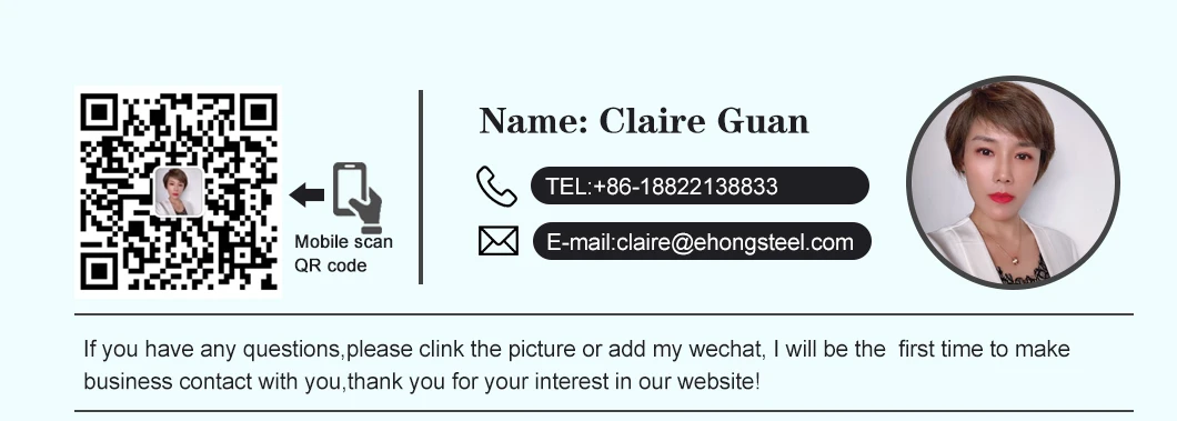 TIANJIN EHONG INTERNATIONAL TRADE CO., LTD . Es una empresa comercial para todo tipo de productos de acero con más de 17 años de experiencia en exportación Experiencia. Nuestro equipo profesional se basa en productos de acero, productos de alta calidad, precios razonables y excelente servicio, negocio honesto, hemos ganado mercados en todo el mundo.
